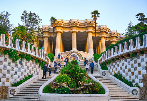 Pēc tam mēs uzkāpsim 300 metrus līdz Gueļas parkam, Gaudi radītai pasaku pasaulei. Mēs apbrīnosim kaprīzās formas un uzzināsim par arhitekta dzīvi šajā īpašajā vietā. Mēs sēdēsim uz 302 metrus gara soliņa, uz kura var ietilpt līdz 1500 cilvēkiem. Tā izmērs ir nopelnījis vietu Ginesa rekordu grāmatā. Ja vēlaties, varat iedziļināties Gaudi radošajā procesā un noskatīties 4D filmu “Gaudi pieredze”.